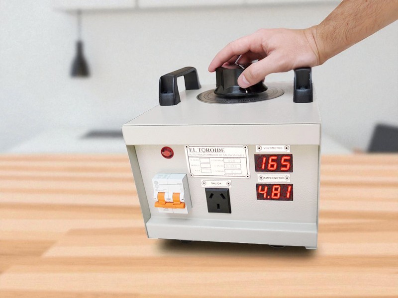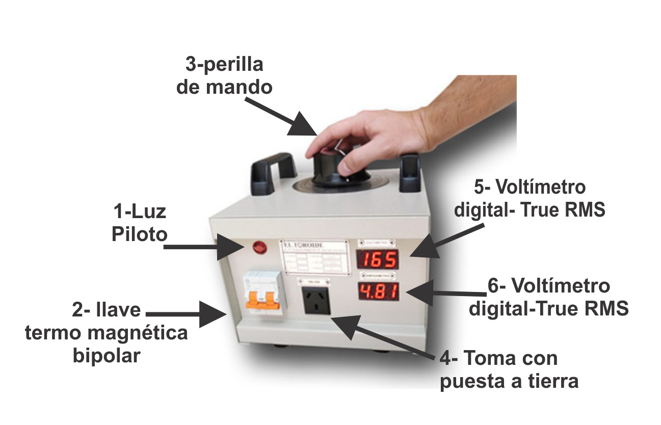 El amperímetro digital indicará el consumo del elemento conectado a la salida del autotransformadorTitular de muestra